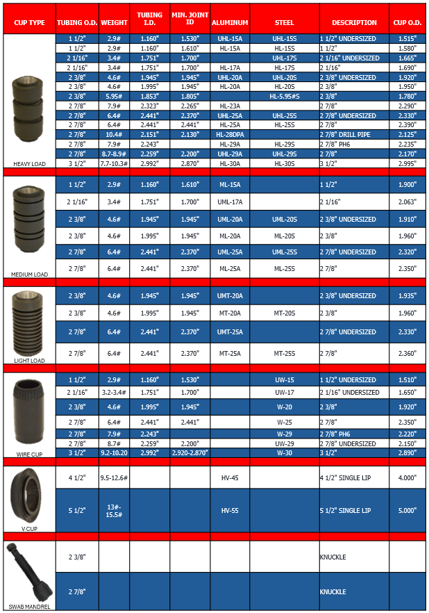SWAB CUPS AND MANDRELS